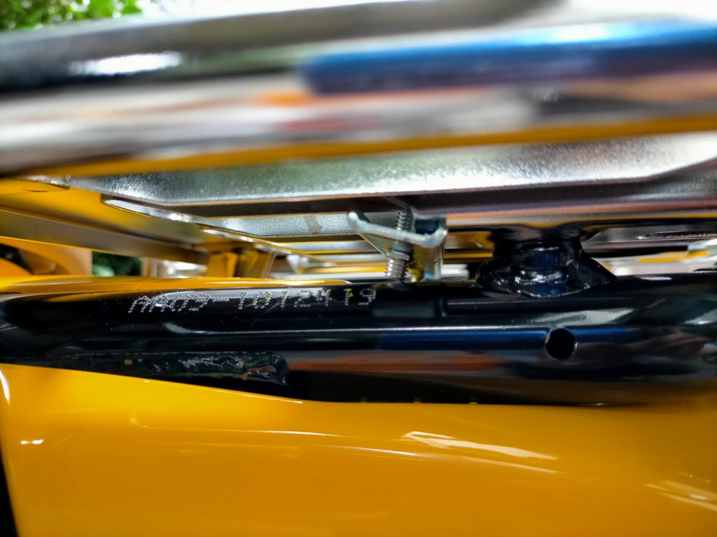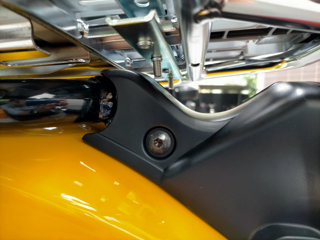 ベース台がちょっと前に行くと、ネジのオシリがカブ本体と干渉して傷付きます。