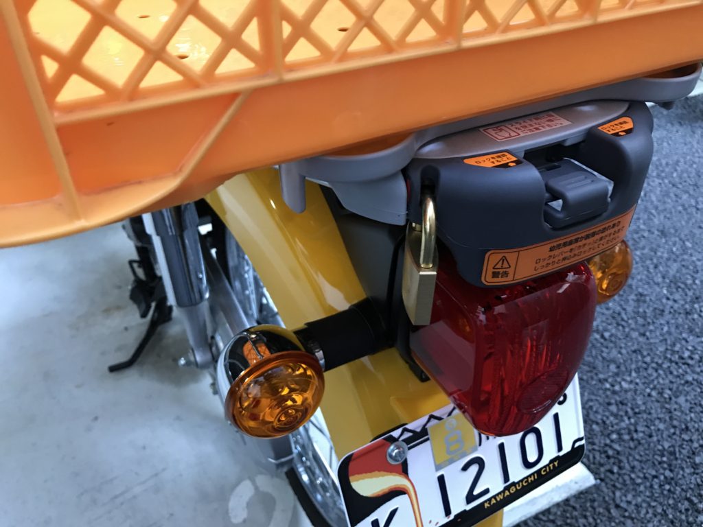 他にもカゴ用固定具を、例えばホムセン箱などに付けておけば、 蓋がほしいな〜なんて思ったらホムセン箱を、カブらしいビジュアルで走りたいな〜という時は収穫箱などというように、自由度が飛躍的に増す事になるのです。