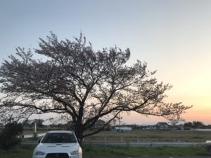 私のスマホがiPhone7で、もはや型遅れも甚だしいカメラですから、夕日にたそがれる桜の木